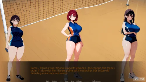 In the visual novel "Love on the Approach," you'll be fully immersed in the role of the protagonist, who, after enrolling at the prestigious University of Tokyo, unexpectedly becomes the manager of a women's volleyball team. You'll master new responsibilities, oversee training, and witness exciting matches and behind-the-scenes situations. Your path will be thwarted by an intrusive and domineering coach who seeks to control everything and everyone. Your ultimate goal will be to win the heart and affection of one of the talented athletes, whose fate rests in your hands. Every decision you make will shape the development of a romantic relationship filled with trust, jealousy, and tender feelings. This is an anime romance for adults, where passion for sports, intrigue, and complex interpersonal relationships intertwine.