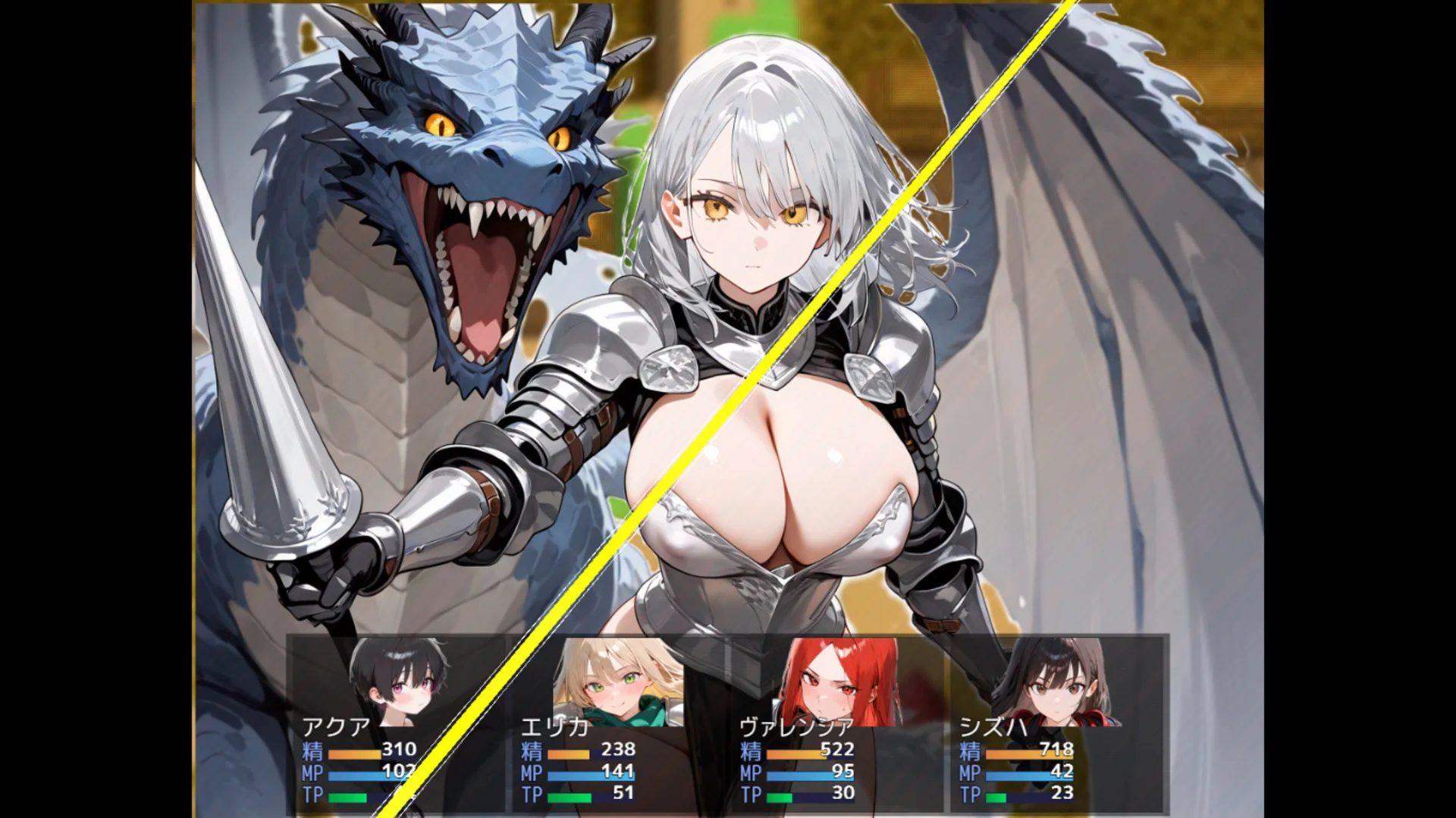 Called upon as a hero, you travel with a group of girls, resist the temptations of monster girls, defeat the Demon King, and bring peace to the world in this RPG.