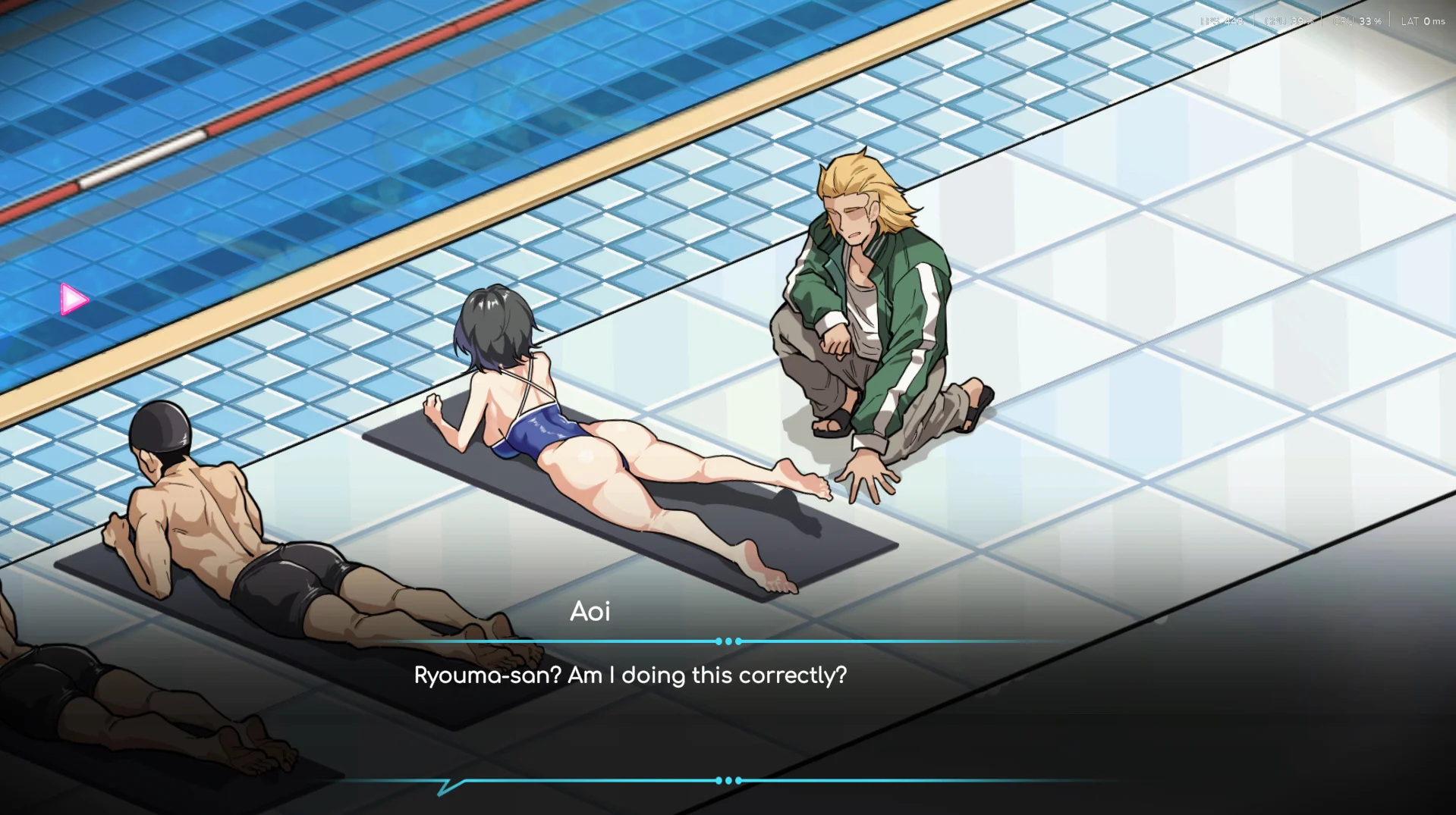 Ryouma's job is to manage the pool while utilizing his impressive physique,